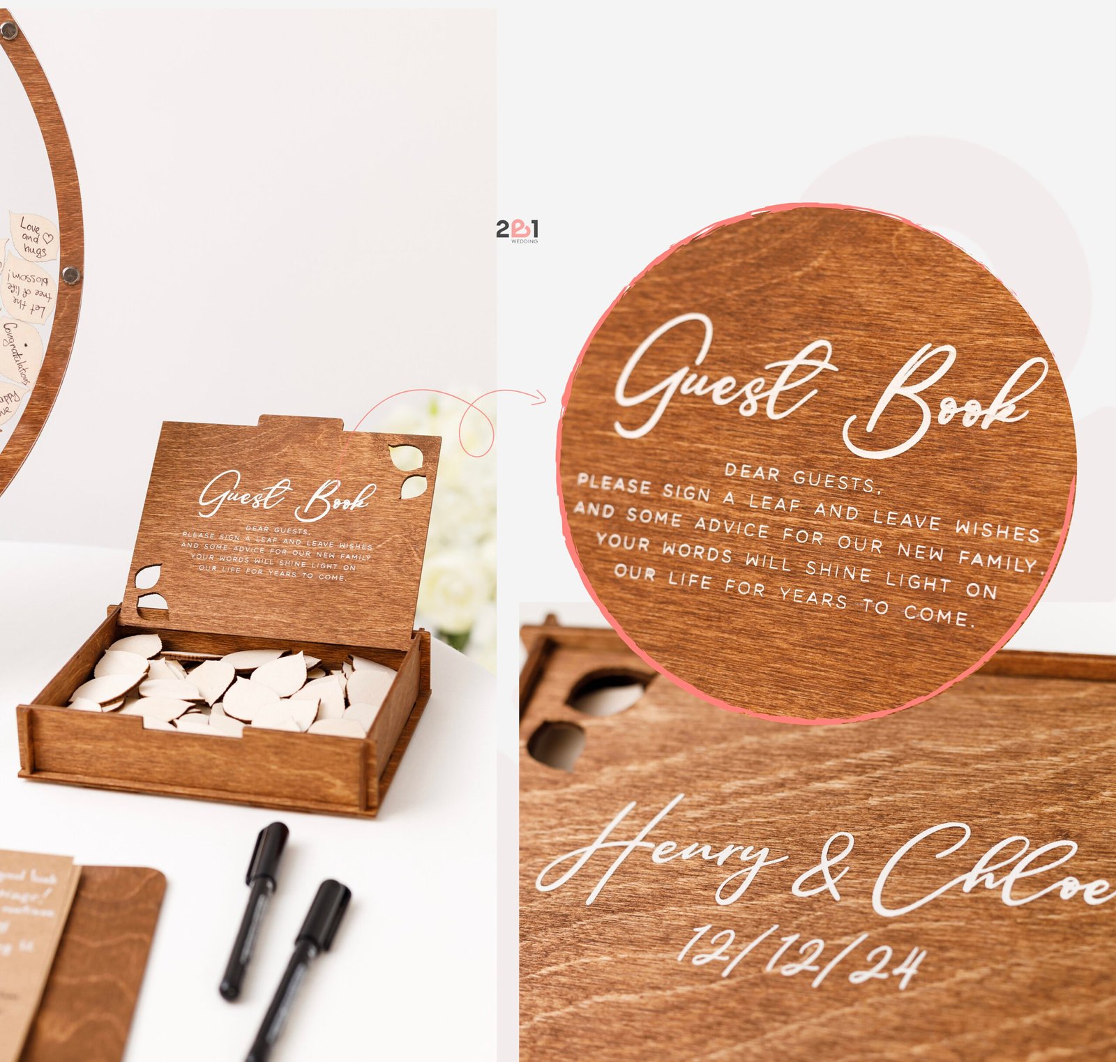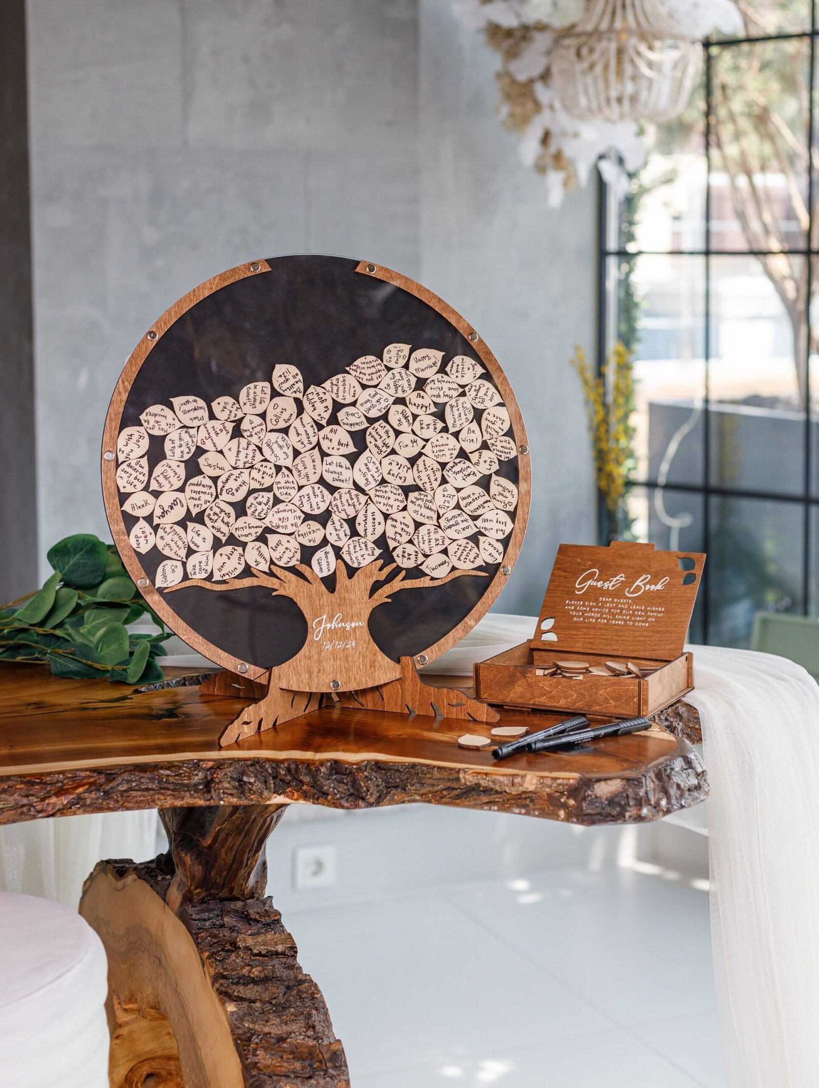 - Versatile Guest Signatures – Guests can sign directly on the wood leaves or write personal notes on add-on pieces.